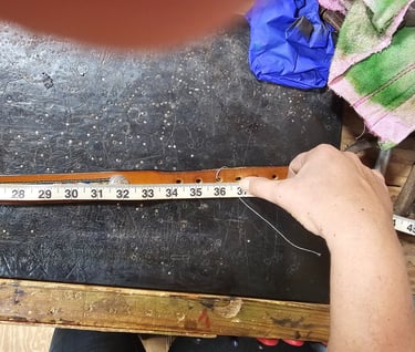Since the belts are all hand-crafted and made to pair with our buckles, please make sure to follow our sizing guide below to make sure that you order the right size. Ordering the wrong size can alter the placement of images and even how the end of the belt sits in relation to the buckle.